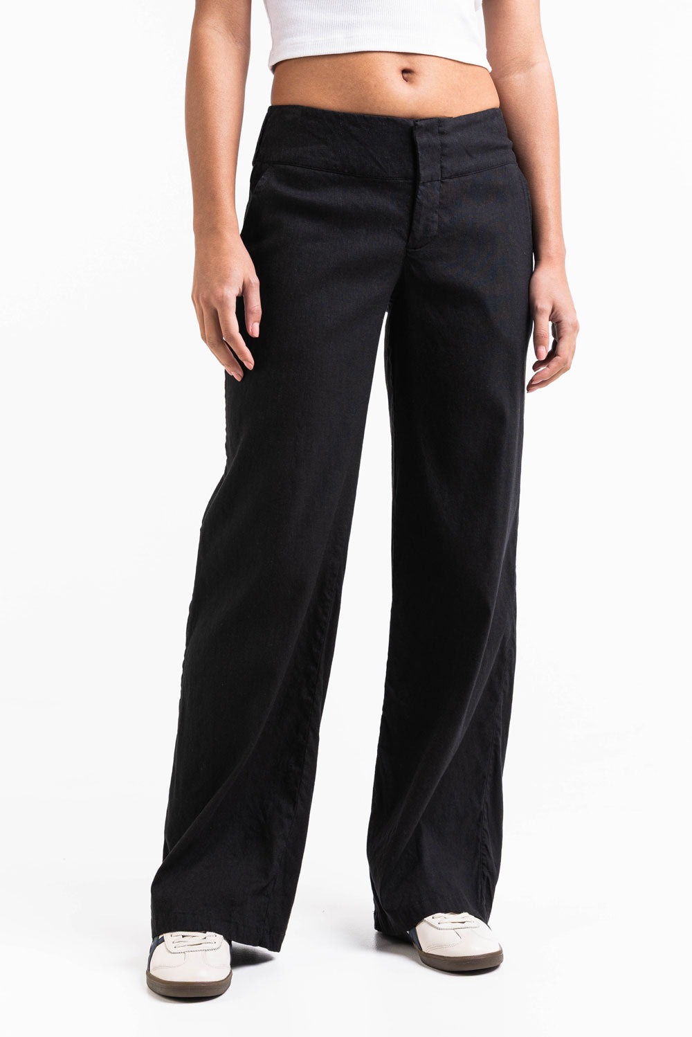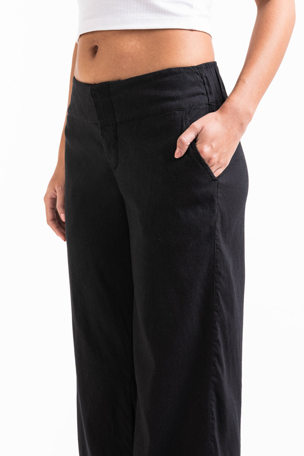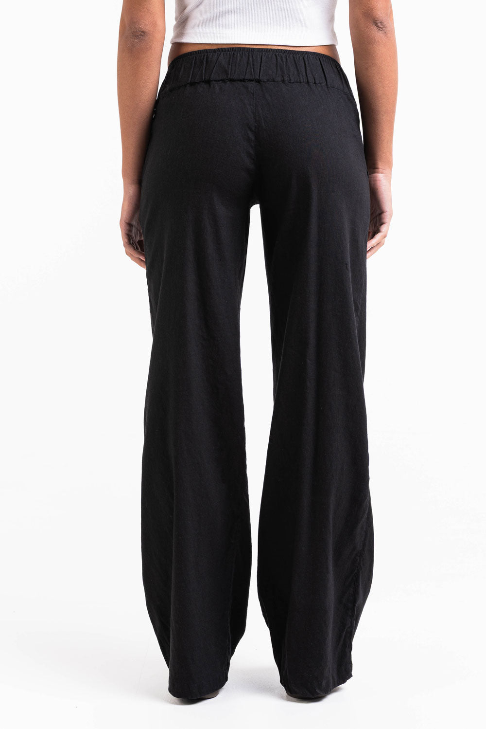 Mabel 03Low LinStretch Straight Linen Pants - Black