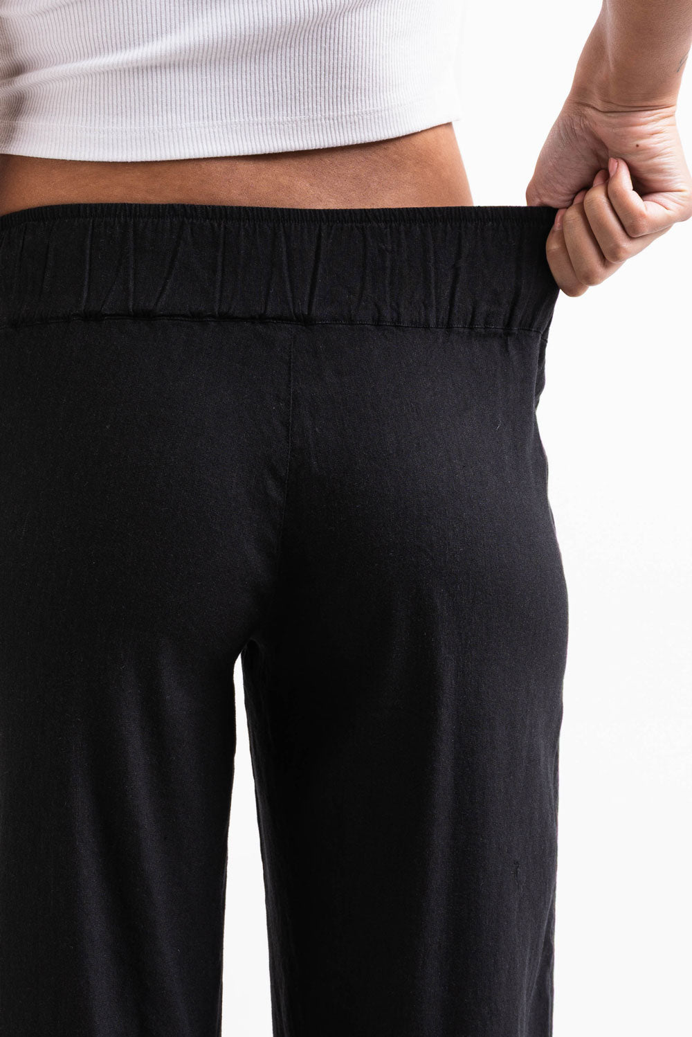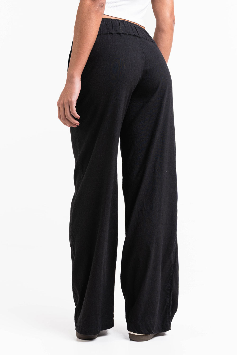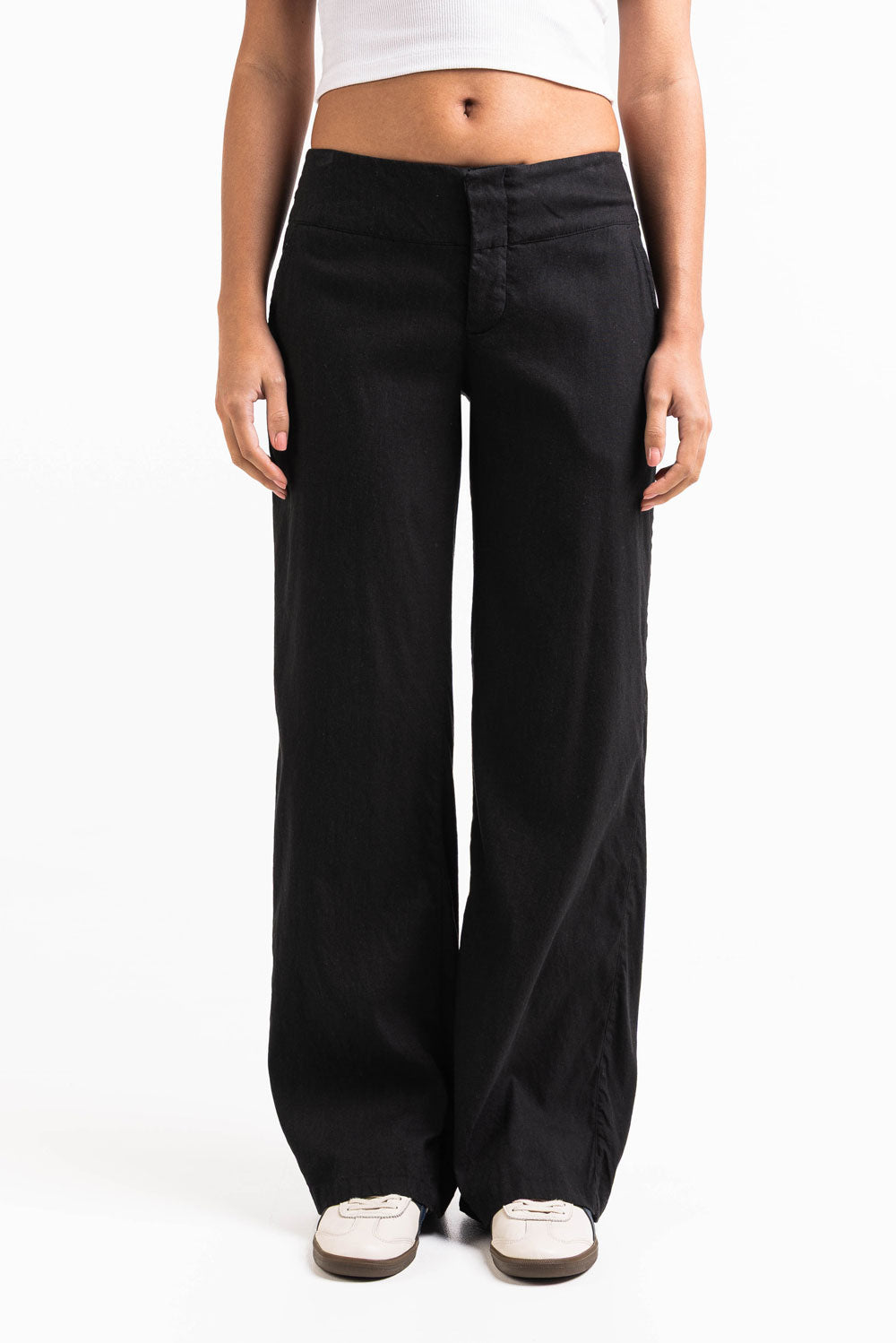Mabel 03Low LinStretch Straight Linen Pants - Black