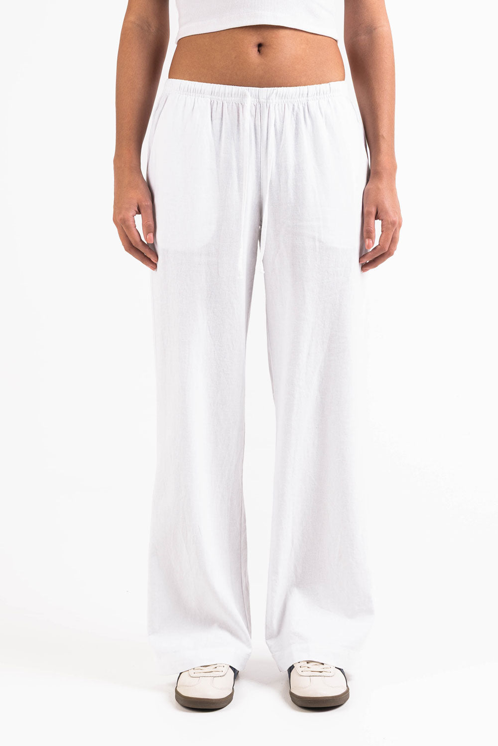 Mel 04Low Straight Linen Pants - White