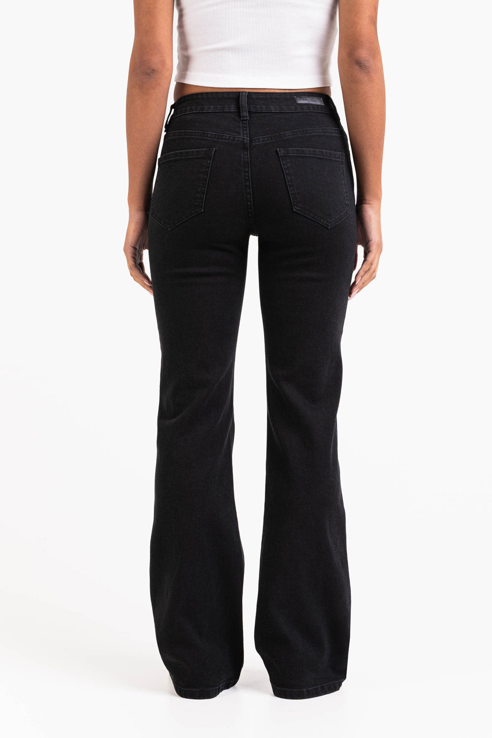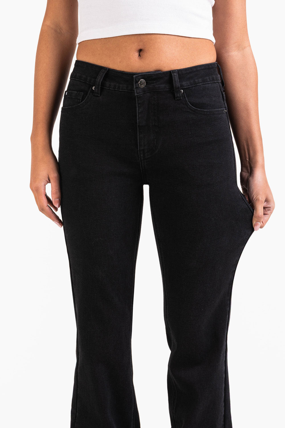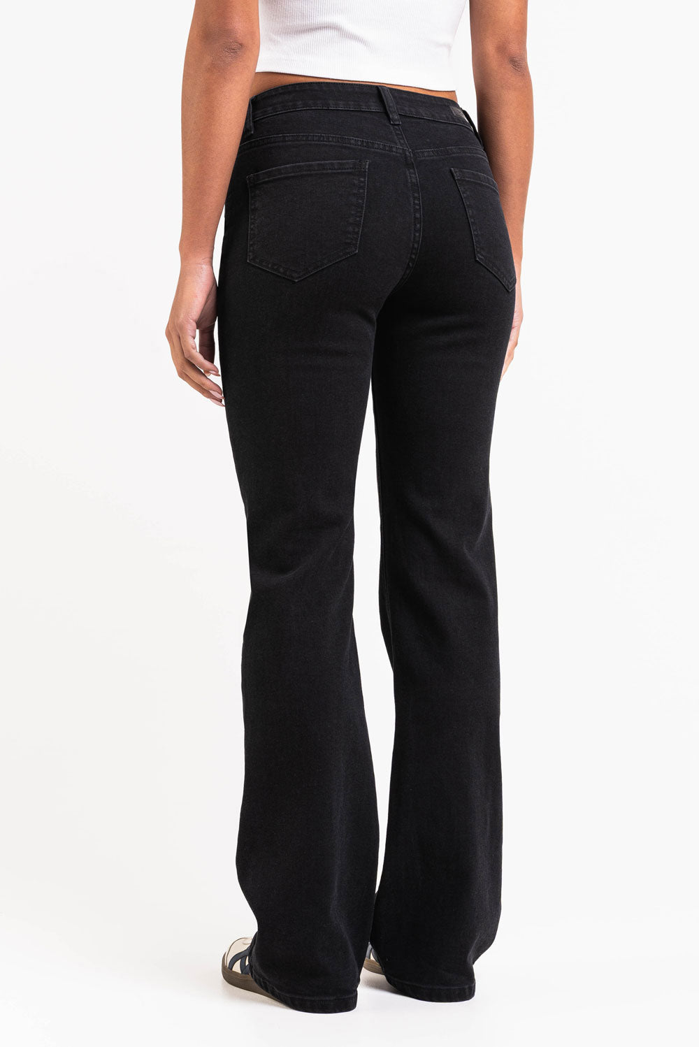 Diese mittel taillierten Jeans haben eine Bootcut-Passform mit hinteren und seitlichen Taschen für den Alltag. Mit Gürtelschlaufen und einem Reißverschluss ausgestattet bieten sie eine zeitlose strukturierte Optik perfekt für legere Outfits.