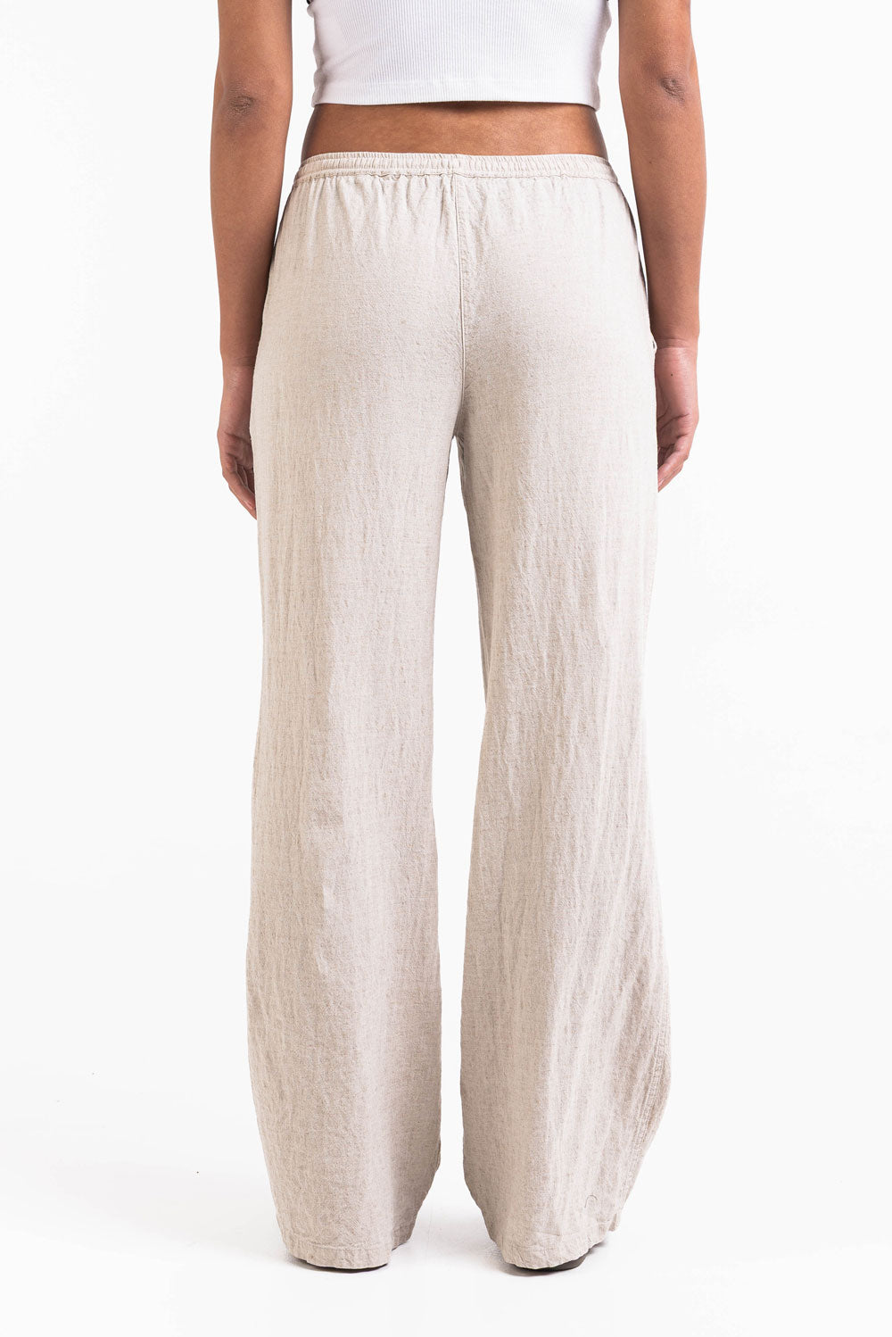 Diese mittel taillierte Leinenhose hat eine entspannte gerade Passform mit praktischen Seitentaschen. Der elastische Bund Kordelzug und das faltbare Design sorgen für eine sichere Passform während sie leicht und atmungsaktiv bleibt.