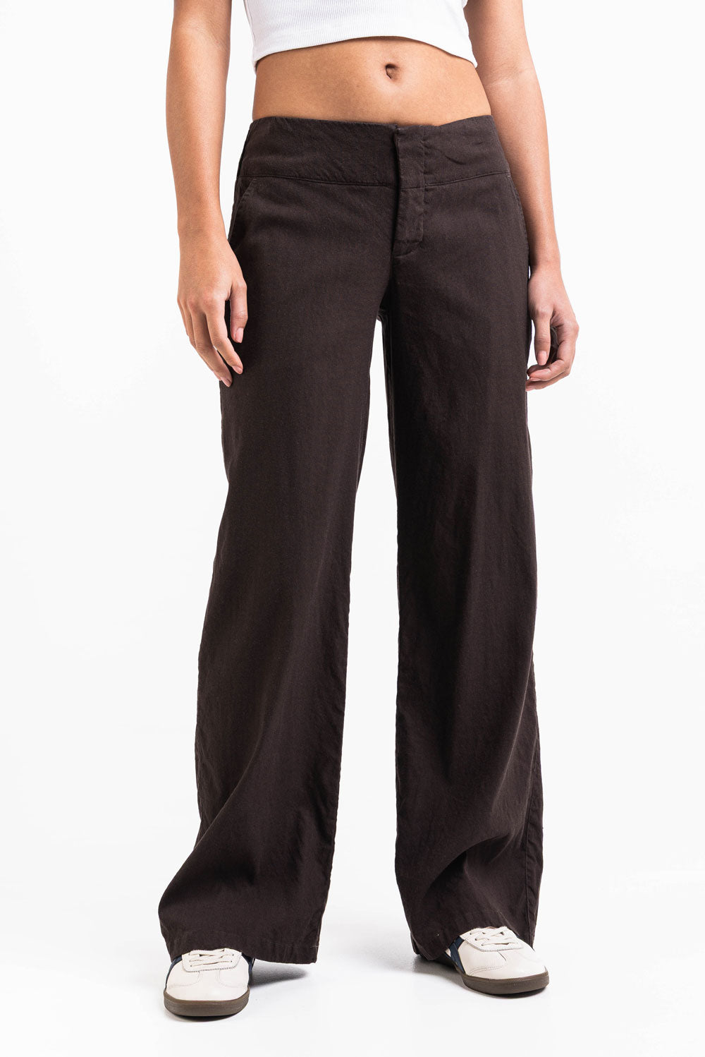 Mabel 03Low LinStretch Pantalon en lin coupe droite - Brown
