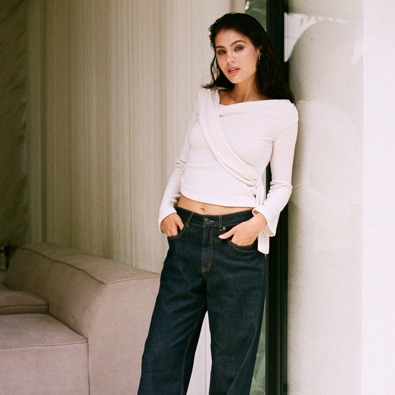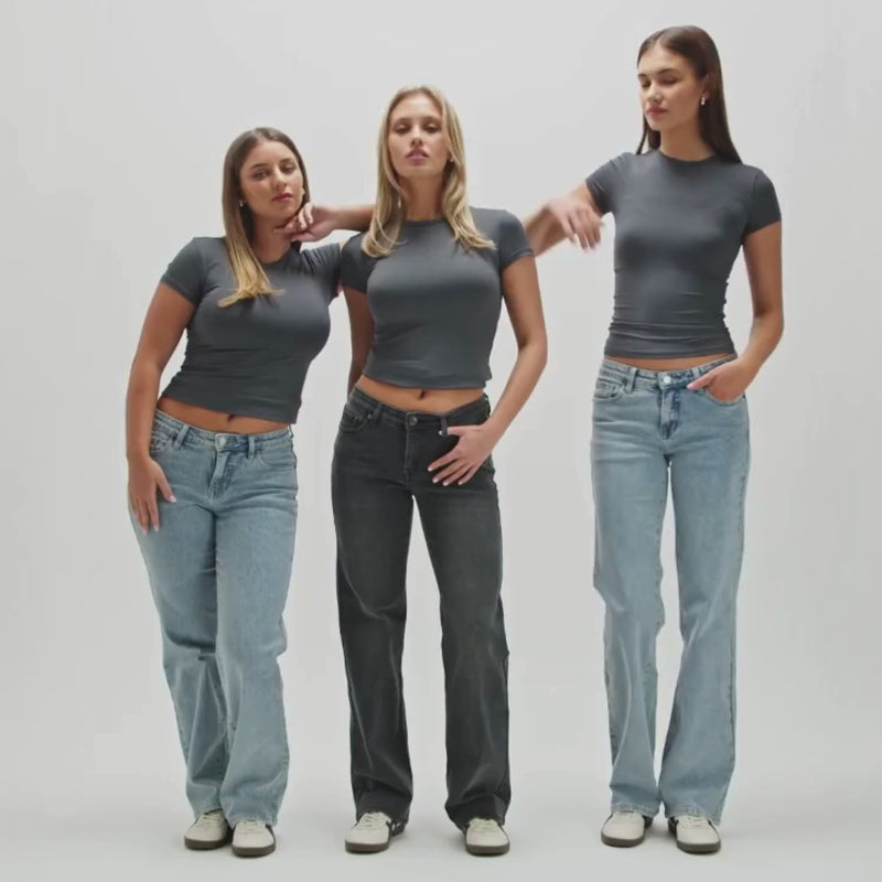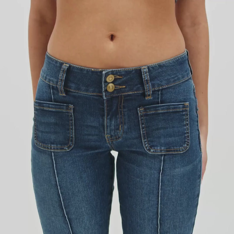 These mid-waist jeans feature a bootcut fit with back and side pockets for everyday practicality. Designed with belt loops and a zip fly, they offer a timeless, structured look perfect for casual outfits.